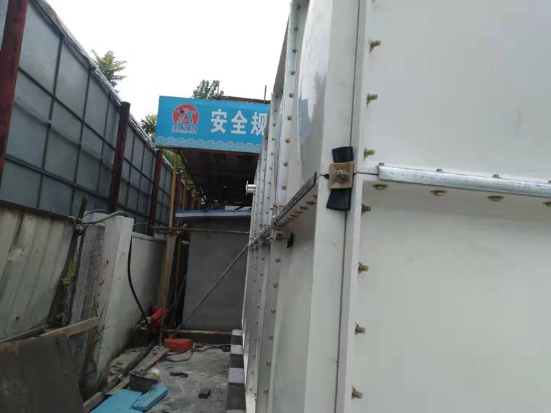 供貨單位:山東省騰翔集團武城模壓制品有限公司施工單位:天津武清區運河小鎮產品名稱:玻璃鋼水箱產品型號:5*4*2 安裝現場如圖: